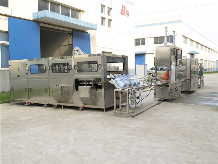 2、該設備適用5加侖瓶使用(也可適用3加侖瓶,但需提供樣瓶),該設備集洗瓶、灌裝、套蓋、壓蓋和成品送出為一體。洗瓶機采用多道洗滌液噴射和消毒液噴射,達到洗滌、消毒的目的,消毒液可以循環(huán)使用。封口機可以自動封口,輸送瓶蓋過程口配有衛(wèi)淋裝置,以確保瓶蓋無菌清潔。